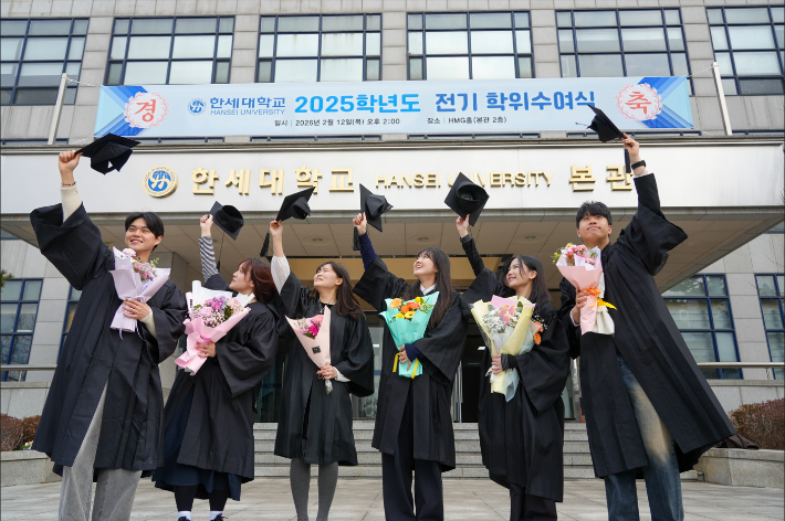 ÇѼ¼´ë Á¹¾÷»ýµéÀÌ 12ÀÏ Àü±â ÇÐÀ§¼ö¿©½ÄÀ» ¸¶Ä¡°í ±â³ä »çÁø ÃÔ¿µÀ» Çϰí ÀÖ´Ù. ÇѼ¼´ë ´ë¿ÜÇù·ÂÆÀ Á¦°ø